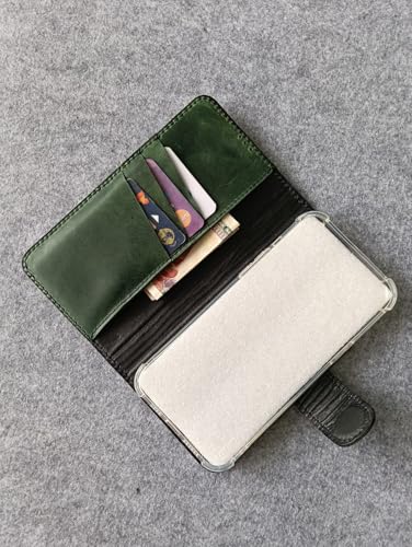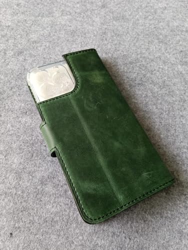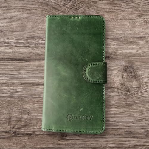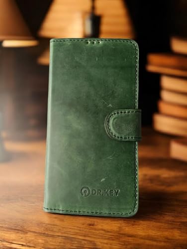 dr.key - جراب محفظة لموبايل آيفون 15 برو، محفظة من الجلد الخالص، حامل كروت قلاب، جراب محفظة موبايل آيفون 15 برو من دكتور كي، أخضر