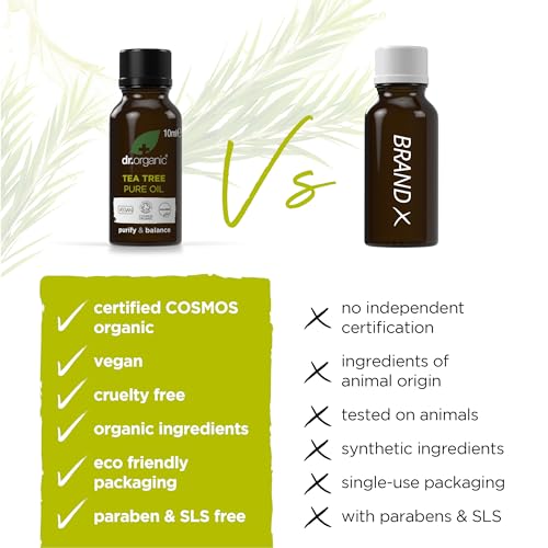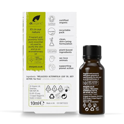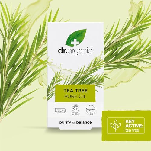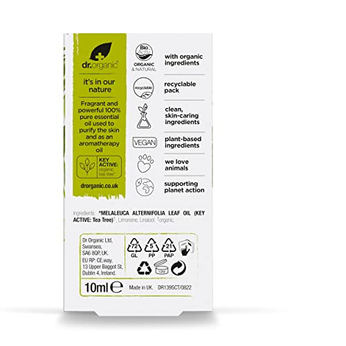 Dr. Organic - زيت شجرة الشاي النقي لتنقية البشرة الدهنية من دكتور اورجانيك، زيت طبيعي ونباتي لم يختبر على الحيوانات وخالي البارابين وكبريتات الصوديوم، زيت عضوي في عبوة معاد تدويرها وقابلة لإعادة التدوير، 50 مل