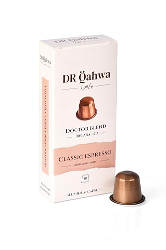 - 10 كبسولات قهوة كلاسيكية من دكتور قهوة، حبوب عربية 100%، كبسولات ألمينيوم 100% متوافقة مع نسبريسو