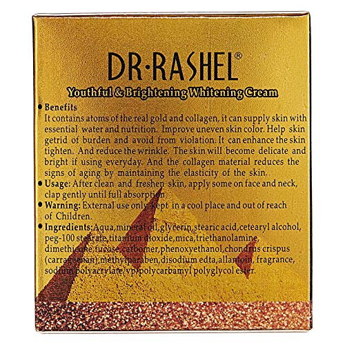 DR.RASHEL - كريم تبييض الشباب والبشرة من دكتور-راشيل 24 قيراط مع ذرات الذهب الحقيقي والكولاجين ، 30 مل