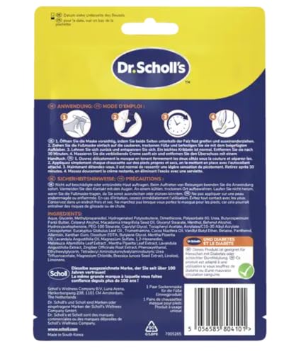 - راحة مهدئة للأقدام المتعبة: يحتوي قناع القدم المهدئ والمجدد من د.شولز على جوارب مرطبة تدفئ بلطف وتهدئ بسرعة وتهدئ القدمين المتعبة والألم ؛ يشعر البعض بالدفء والبعض الآخر شعور بالبرودة