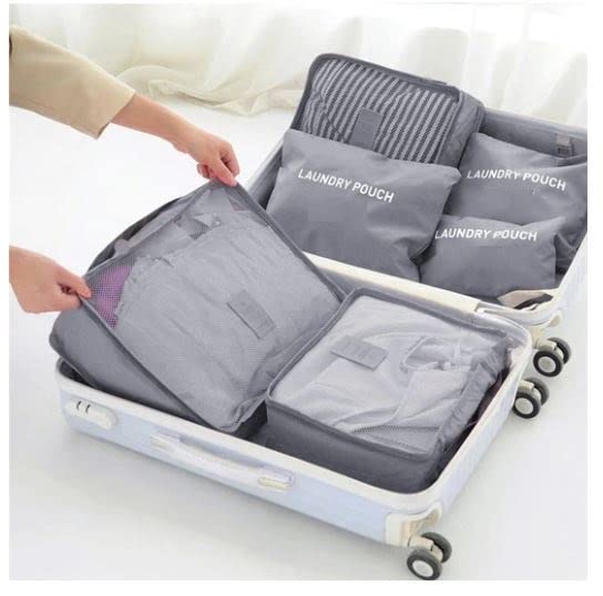 Dragon - شنط تنظيم وتخزين الملابس للسفر موفرة للمساحة لادوات الزينة ومستحضرات التجميل والملابس الداخلية واللانجيري والشرابات والاحذية 6 قطع لون (رمادي) من اانسس