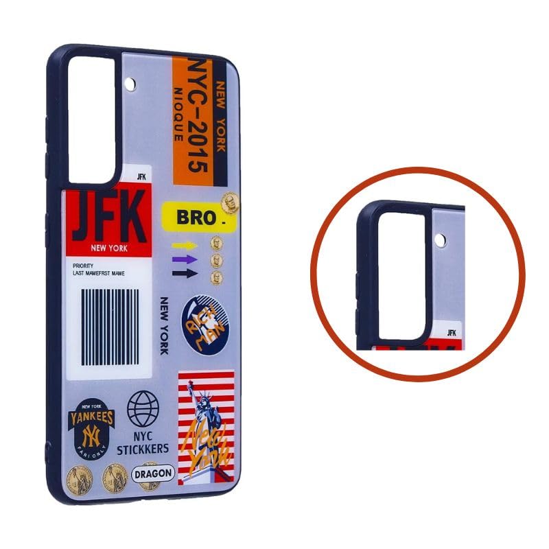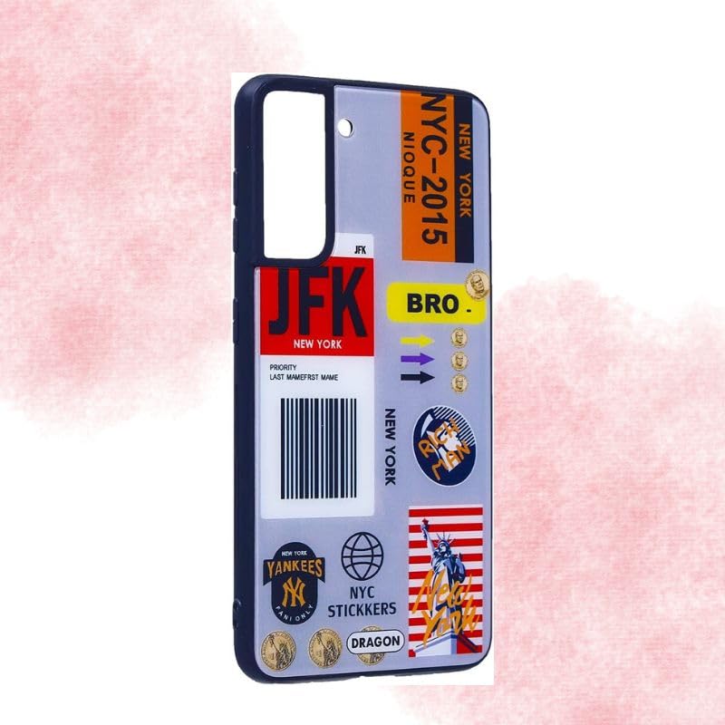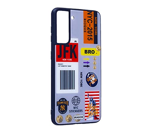 Dragon - جراب زجاجي خلفي متين لموبايل سامسونج جالاكسي S30 S21 بتصميم نيويورك من دراجون - متعدد الالوان، بلاستيك