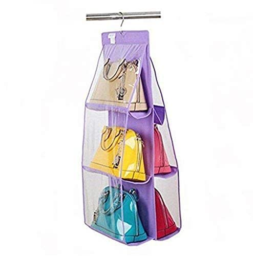 Dragon - معلقة تخزين شنطة 6 جيوب غير منسوجة PVC محفظة يد حمل المنظم الشماعات متعددة ارجواني