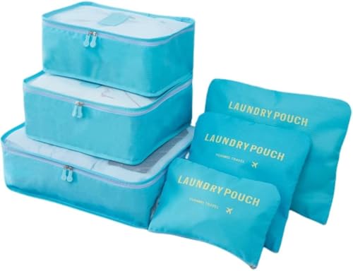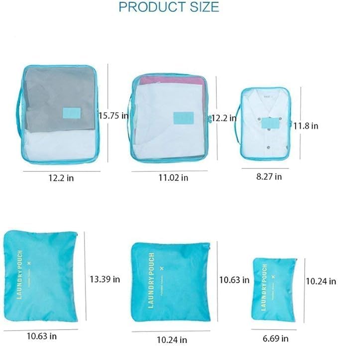 Dragon - شنط منظمة لأمتعة السفر - شنط تخزين ملابس شبكية للسفر - شنط غسيل - عبوة لفرز الملابس - شنطة أحذية للسفر 6 قطع، لون أزرق من دراجون