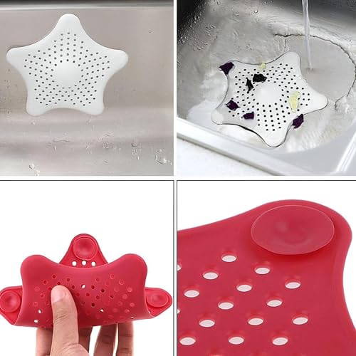Generic - غطاء فتحة تصريف: بساط من السيليكون على شكل نجمة لحوض الحمام والمطبخ، لمنع الانسداد وحماية فتحات الصرف، ألوان متعددة، 4 قطع