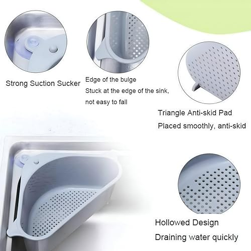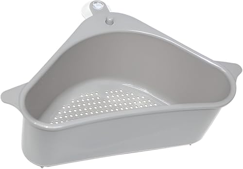 Generic - رف تصريف - حامل حوض مثلث للاسفنجة والصابون، رف مطبخ متعدد الوظائف مع شفط مياه سريع التصريف ومنظم لأدوات الحوض (رمادي)