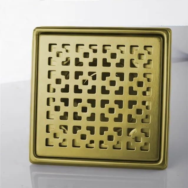 Generic - صرف (صرف استحمام مخفي ديكوري مربع للحمام مع مانع ارتداد ذهبي مقاس 15*15 سم معدن)