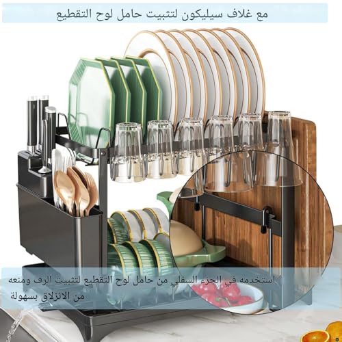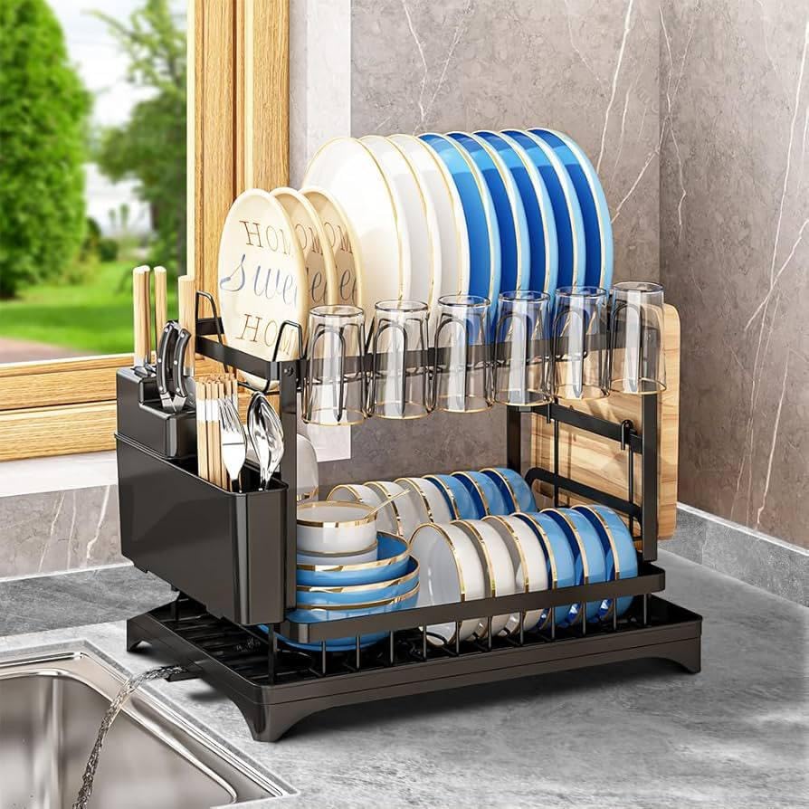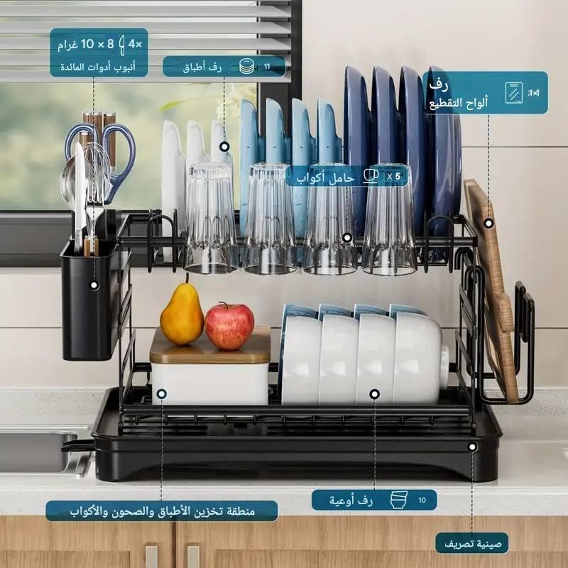 - يتميز رف الأطباق المكون من طبقتين بتصميم واسع يبلغ طوله 42.42 سم وعرضه 17.78 سم وارتفاعه 11.9 انش، مما يوفر مساحة تخزين واسعة للأطباق والأكواب والأواني وألواح التقطيع والأواني - كل ذلك في وحدة صغيرة واحدة توفر ما يصل إلى 80% من مساحة سطح الطاولة.