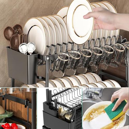 Generic - قناة تصريف - تحمل الأطباق والأكواب والملاعق والشوك والسكاكين واللوحات مع متانة معدنية عالية وتصريف مياه مدمج