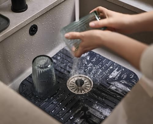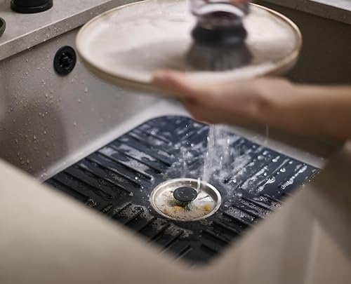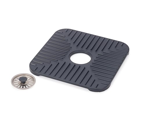 Generic - بساط تصريف - واقي حوض غير قابل للانزلاق مع قابس قابل للازالة، ميزة تصفية المياه، مصمم لحماية الاواني الزجاجية والاطباق في المطبخ