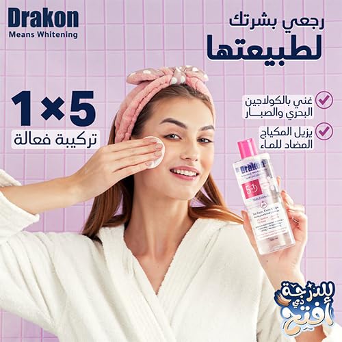 Drakon - ماء ميسيلار 5 في 1 مقاوم للماء لتفتيح الوجه والعينين والشفاه والمكياج اليومي بنسبة 0% كحول وصابون من داركون، 500 مل