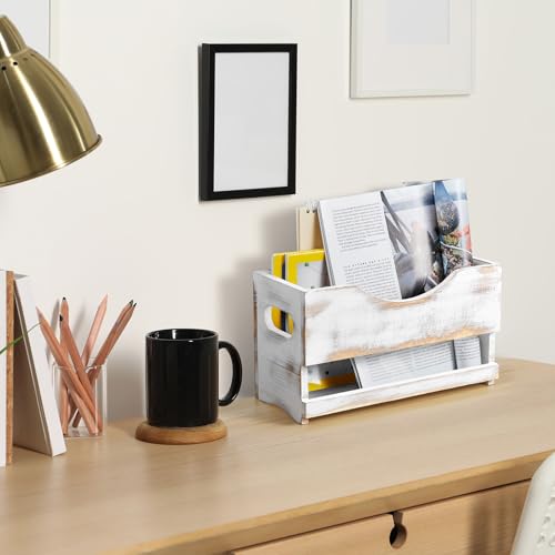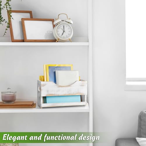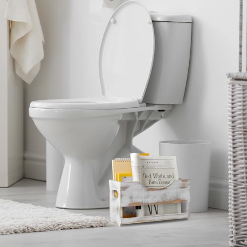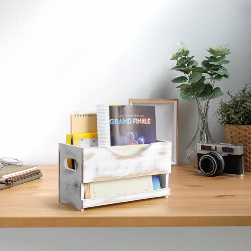 DRASTAR - حامل خشب للمجلات، سلة مجلات منظمة من الخشب للحمام وأسطح الطاولات، لتخزين الكتب والملفات والجرائد من دراستار، أبيض بتصميم ريترو