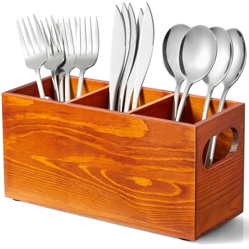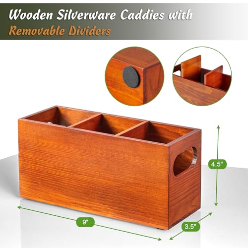 DRASTAR - علبة ادوات المائدة الفضية للحفلات من دراستار، حامل ادوات مائدة خشبي، حامل ادوات المطبخ لسطح الطاولة، حاويات تنظيم الفضيات، بني