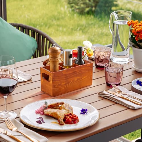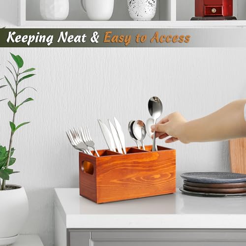 - منظم خشبي مصنوع يدويًا: حامل أدوات من دراستار بمقاس 9 انش × 3.5 انش × 4.5 انش، مصنوع يدويًا من الخشب الصلب، صندوق الأدوات قوي وبسيط ويمكنه حمل كمية كبيرة من أدوات المائدة