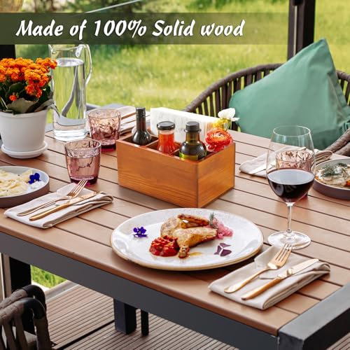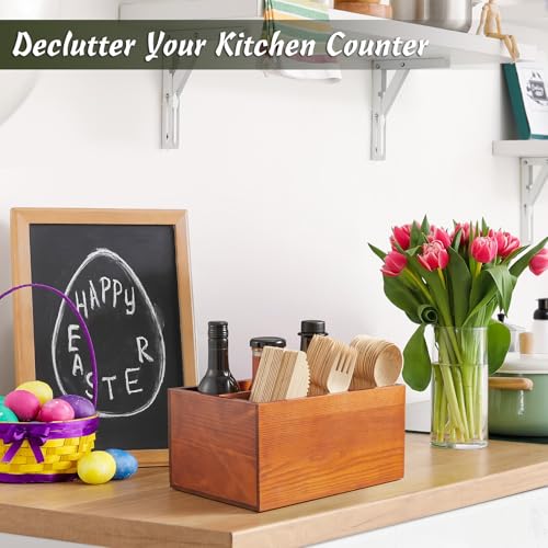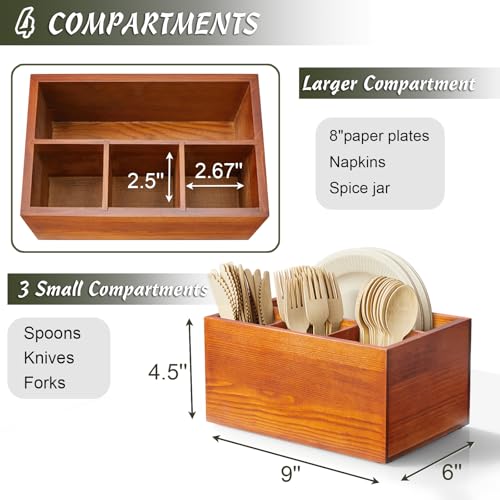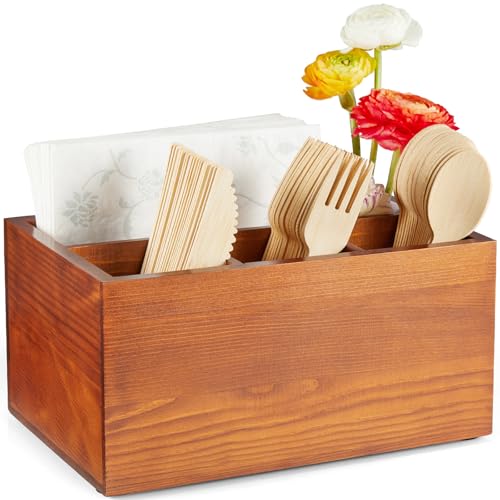 DRASTAR - حامل ادوات مائدة خشبي لسطح الطاولة من دراستار، حامل ادوات مائدة للنزهات، منظم ادوات مائدة من البلاستيك للحفلات، بني