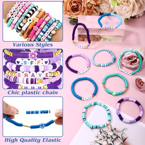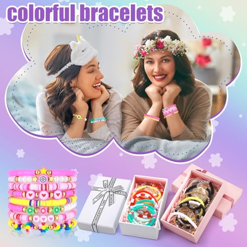 Draupnir - دريساير 48 قطعة من اساور الصداقة هيشي سيرفر الصلصال، اساور خرز الصلصال، اساور مجوهرات بريبي قابلة للتكديس، اساور الصداقة بوهو Y2K للنساء والفتيات المراهقات، هدايا الحفلات