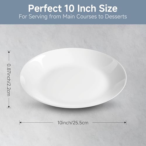 DRAVELLO - طقم أطباق عشاء دائرية من السيراميك مقاس 25 سم آمنة للاستخدام في الميكروويف وغسالة الصحون والفرن من 8 قطع من درافيلو. طلاء ناعم، مقاوم للخدش. أبيض سادة