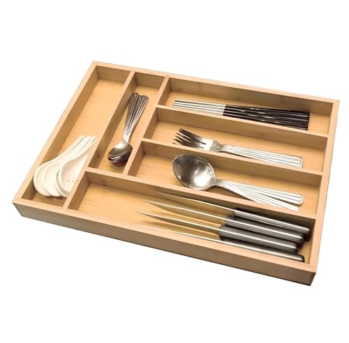 Generic - مقسم ادراج - مسند ادوات مائدة من الخيزران متعدد الاقسام مع سبعة اقسام للتخزين الفعال وسهولة الوصول الى ادوات المطبخ وادوات المائدة