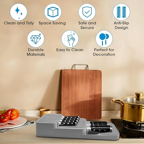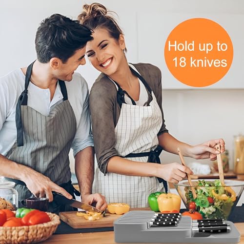 Generic - حامل سكاكين متعدد الأغراض بتصميم مضغوط مكون من 18 فتحة لأدراج المطبخ مثالي للحفاظ على السكاكين منظمة وسهلة الوصول إليها
