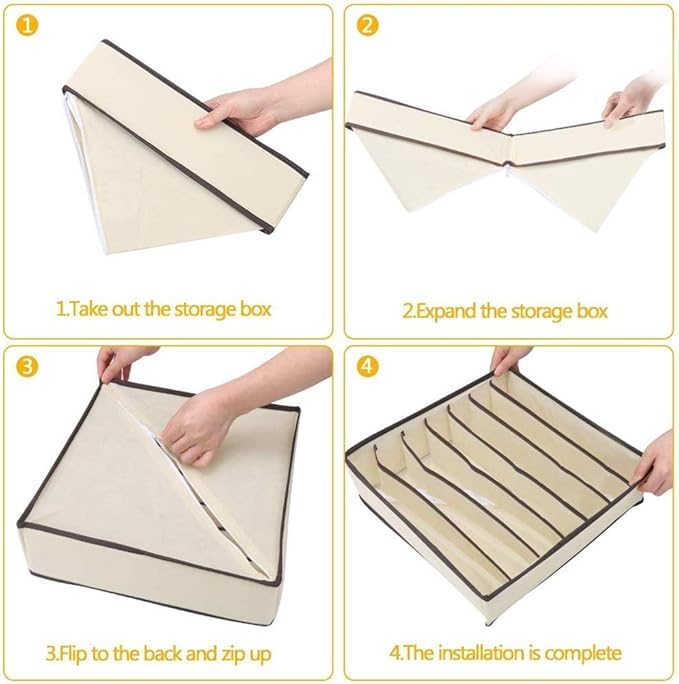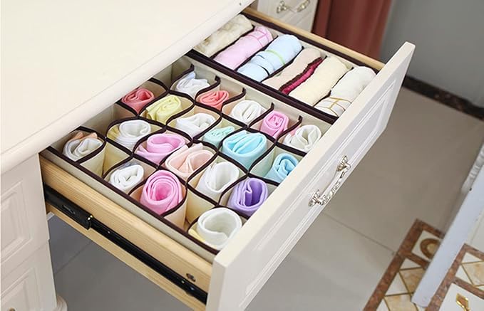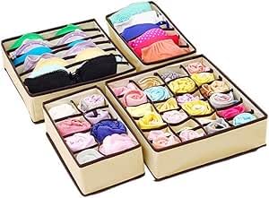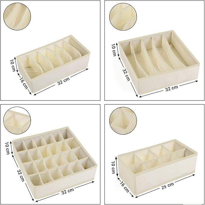 Generic - مجموعة منظم أدراج للملابس الداخلية، والشرابات، والملابس النسائية، 32 سم × 30 سم، بيج، صناديق تخزين قابلة للطي مع مساحات تخزين