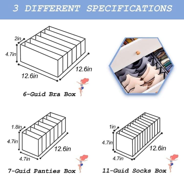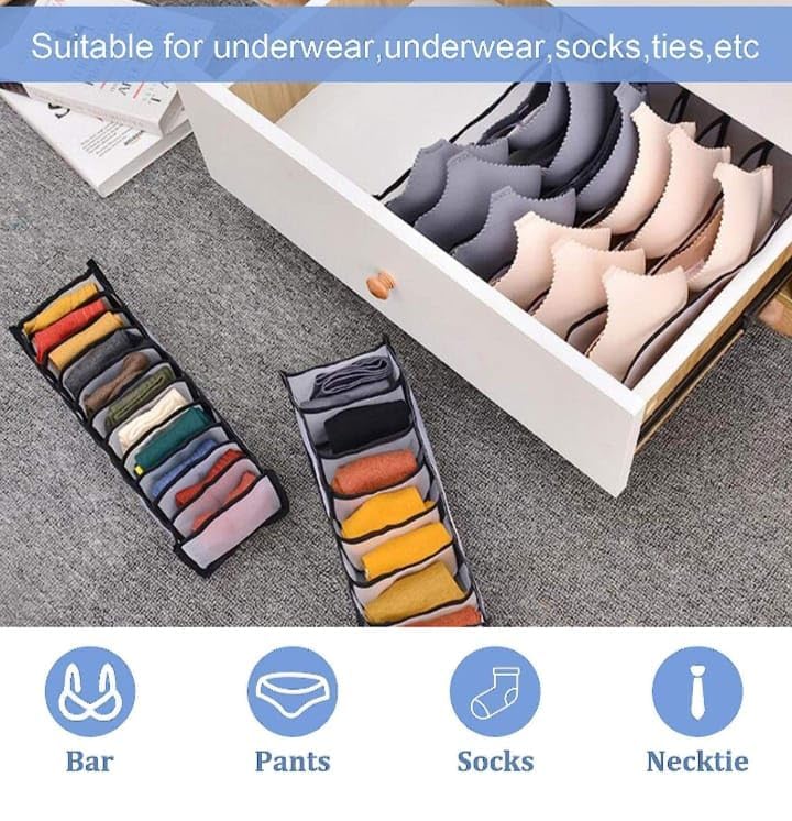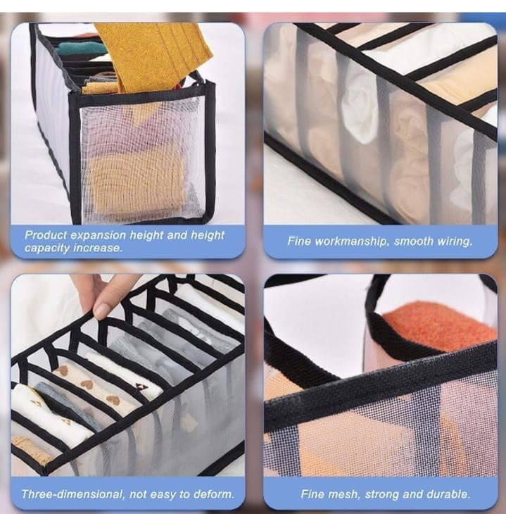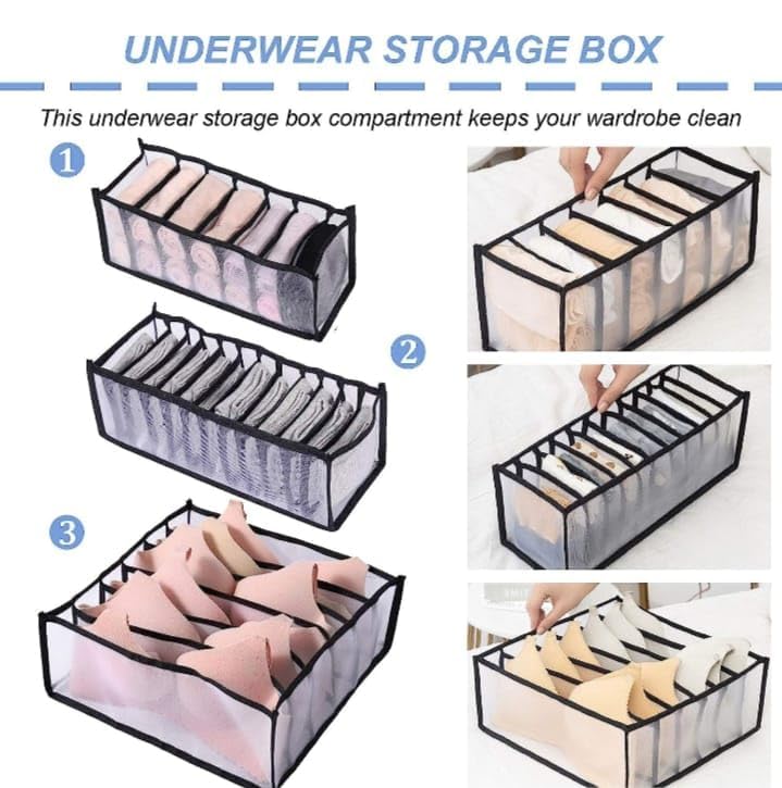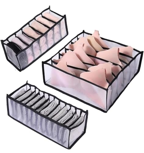 Spaceshoop - منظم أدراج، صندوق تخزين قماشي قابل للطي وقابل للغسل، لحمالات الصدر والجوارب والسراويل الداخلية، منظم لأدراج الملابس، قابل للغسل وقابل للطي، لسراويل الجوارب (أسود) 3 قطع