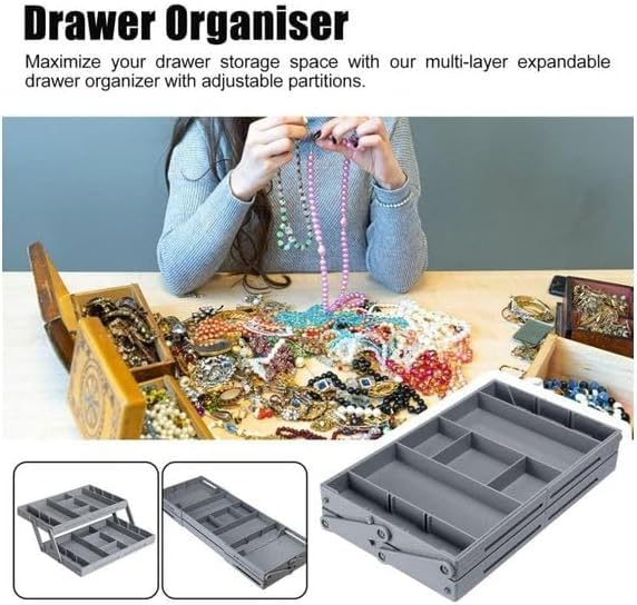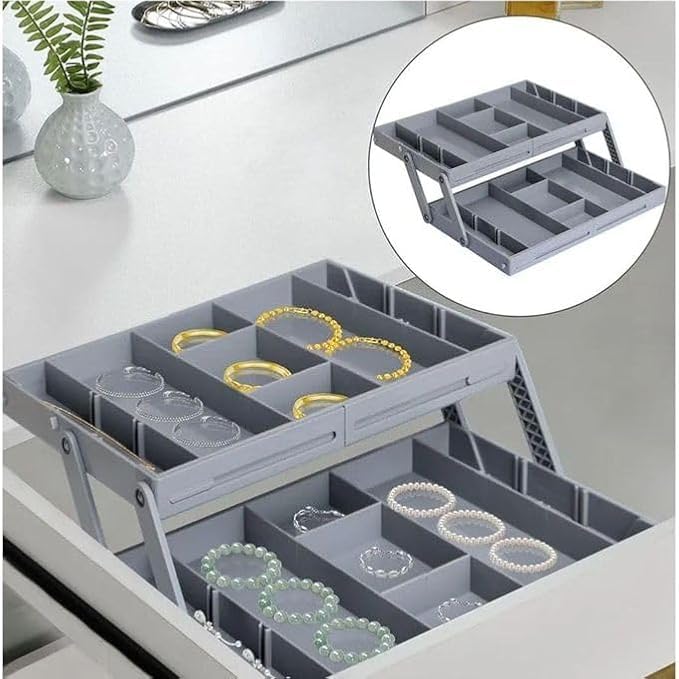Generic - منظم تخزين للأدراج قابل للطي بطبقتين بتصميم ذكي ذو سعة كبيرة للمكياج والمجوهرات والمكتب وصندوق تخزين المطبخ