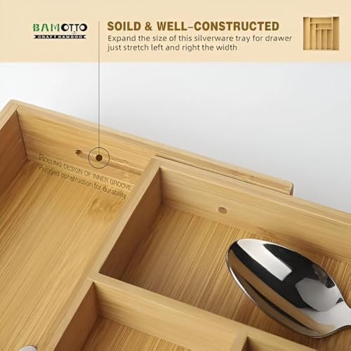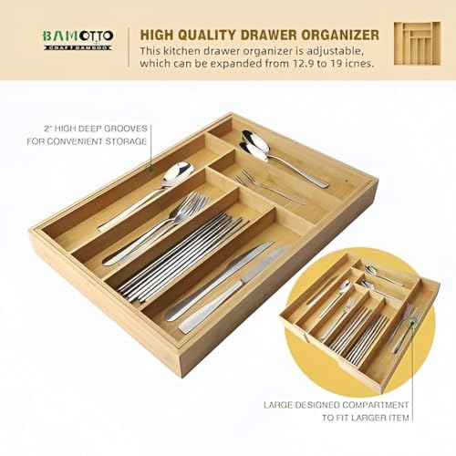 Generic - منظم أدراج - صينية أدوات مائدة كبيرة من الخيزران مع 7 مساحات تخزين سهلة التنظيف لتخزين الشوك والسكاكين والملاعق بجميع مقاسات الأدراج