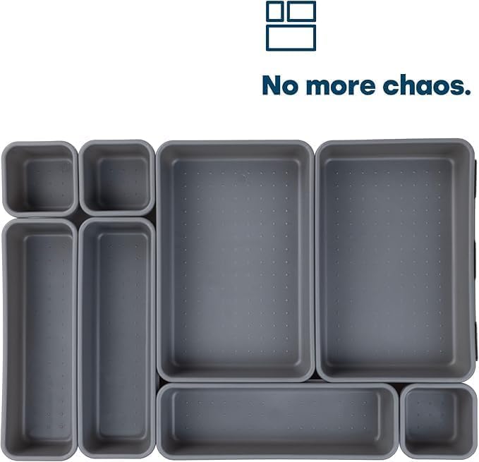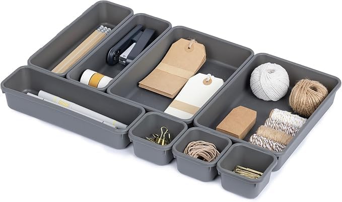 Generic - منظم أدراج يشمل فواصل لأدراج المطبخ ومنظم للمكياج وصناديق تخزين مكتبية وصواني بلاستيكية قابلة للتعديل والرص للأواني والأدوات والاكسسوارات، 8 قطع