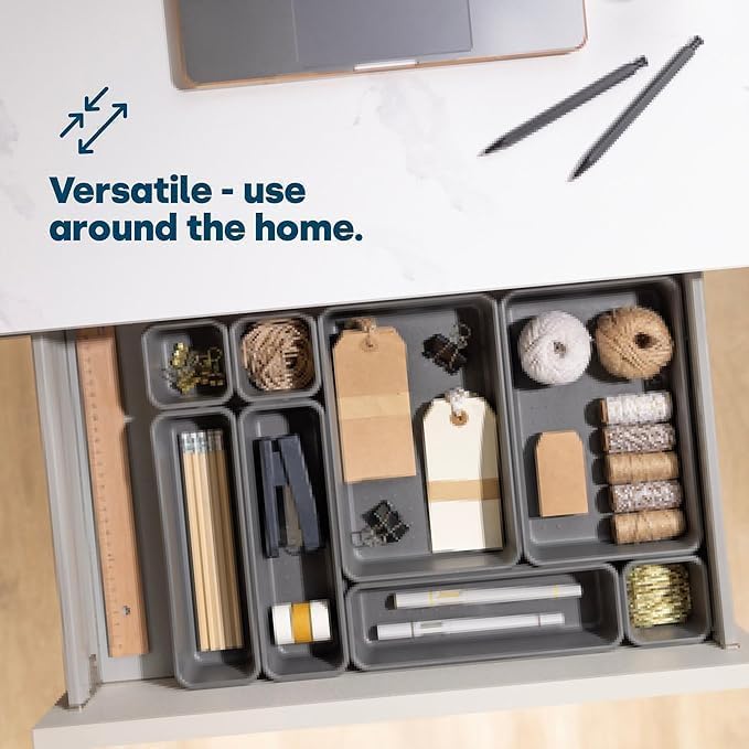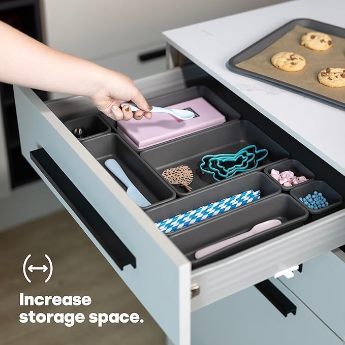 - متعددة الاستخدامات لكل غرفة من أدوات الطعام إلى مستحضرات التجميل، فهذه المجموعة تناسب أسلوب حياتك بالكامل. مثالية لتنظيم أدوات المطبخ ومستحضرات التجميل والأدوات المكتبية وحتى مفاجآت الأدراج العشوائية - جميعها مرتبة ويمكن الوصول إليها جميعًا.