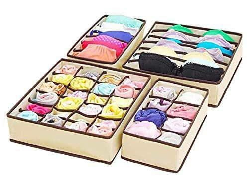 Generic - طقم منظم أدراج 4 قطع متعدد الاستخدامات لتنظيم الأندرويروالبراهات والشربات والفوط، تصميم فاخر قابل للطي يساعد على ترتيب الدولاب وتوفير المساحة، خامة قوية