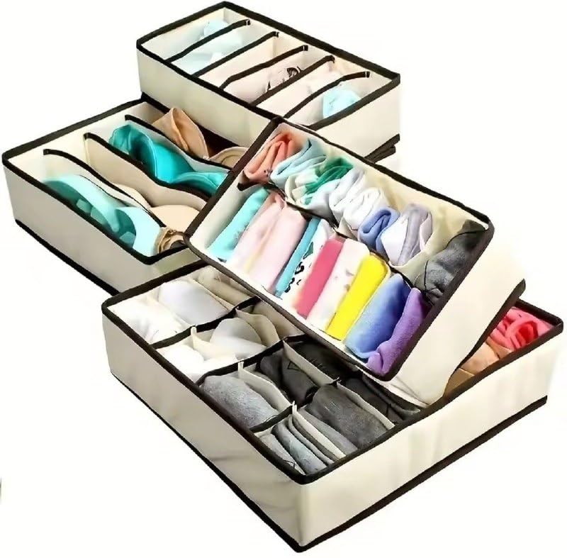 - مجموعة متكاملة: طقم من 4 قطع منظمة للملابس الداخلية، تشمل قطعتين كبيرتين وقطعتين صغيرتين لتنظيم مثالي