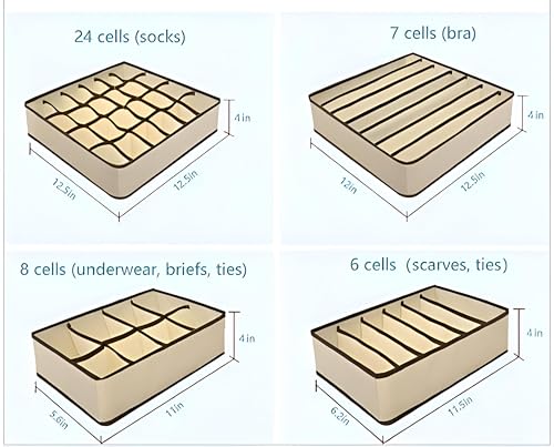 - 4 صناديق تخزين متعددة الاستخدامات مع خلايا متعددة تحافظ على الجوارب والأوشحة والسراويل الضيقة والإكسسوارات منفصلة بأناقة مع توفير مساحة خزانة ثمينة يوميًا.