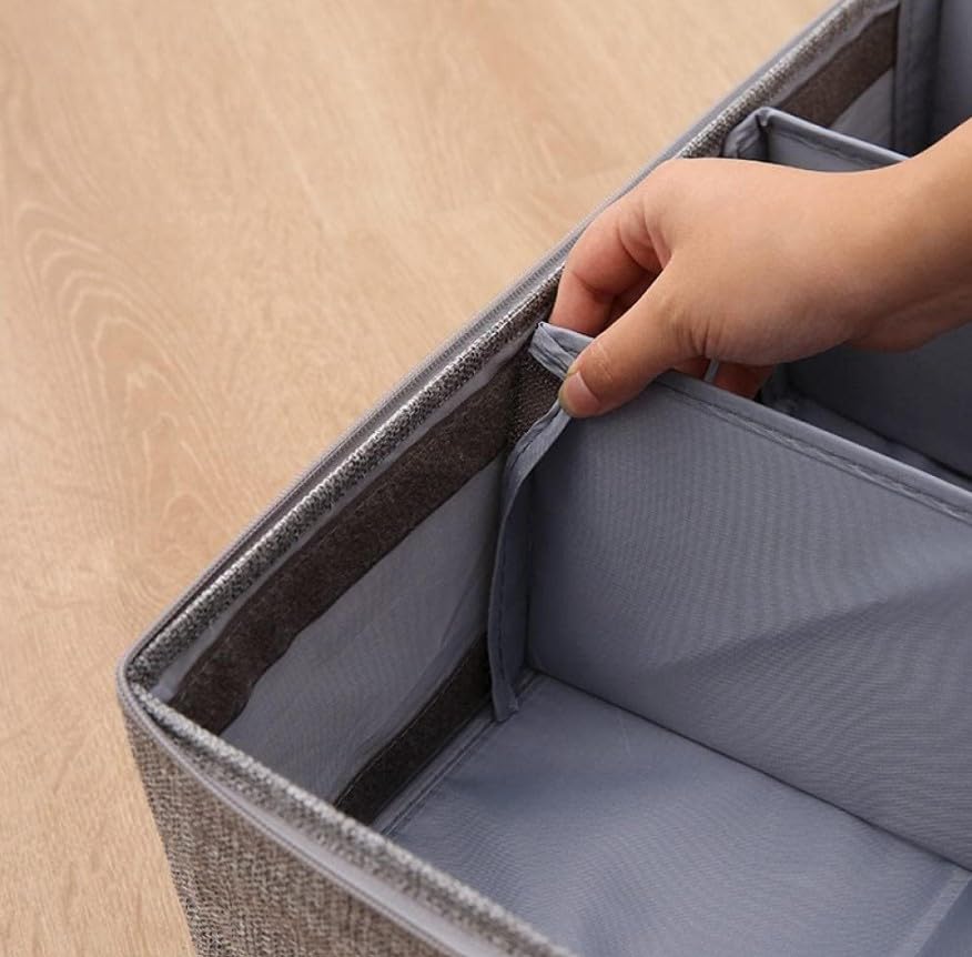 Generic - منظم ادراج مع فواصل قابلة للتعديل، صندوق تخزين رمادي مع ظهر من البولي بروبيلين، حاوية قماشية قابلة للطي للملابس