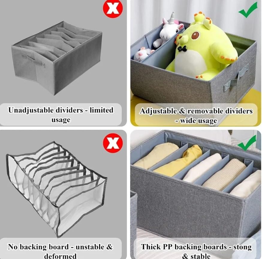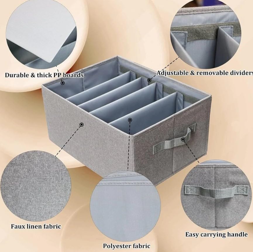 - الأبعاد العملية: منظم قوي قابل للطي يمكن تخزينه بسهولة عند عدم الاستخدام، مثالي للأدراج وخزائن الملابس