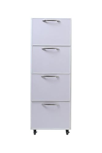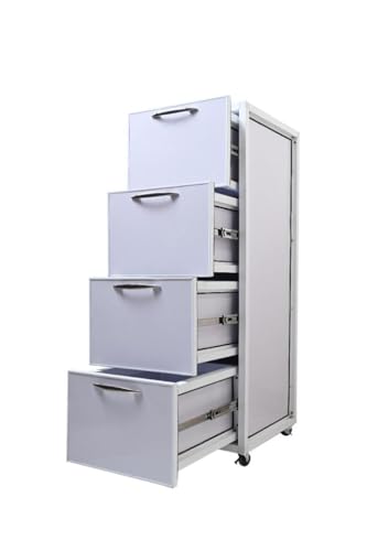 Generic - وحدة إدراج تساعدك علي تخزين وتنظيم أشيائك بها عجلات لسهولة الحركة ونقلها من مكان لأخر - ابيض سادة - 4درج - الوميتال - المقابض ستانلس ستيل 45x48x116