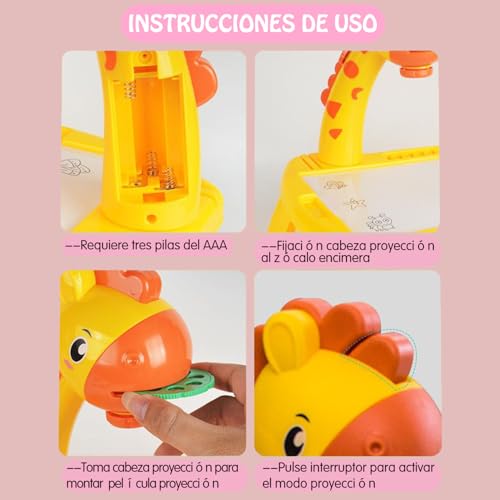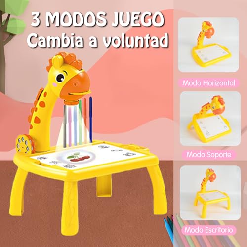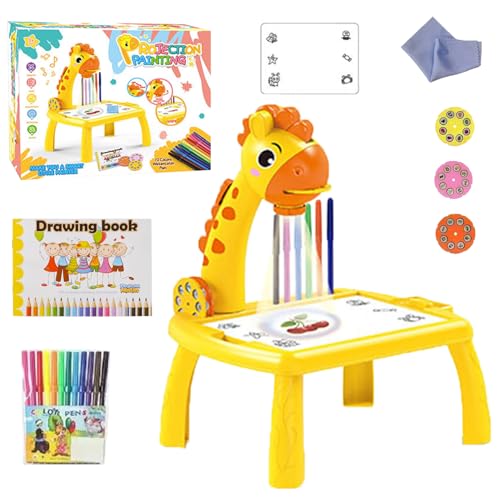BLBAISH - جهاز عرض رسم للاطفال، لوحات رسم تعليمية للاطفال مع اضواء وموسيقى، مكتب تعلم الرسم للاطفال من سن 4-12 سنة (اصفر)