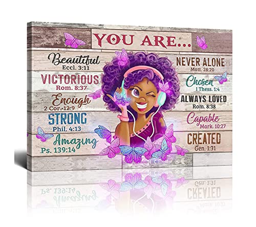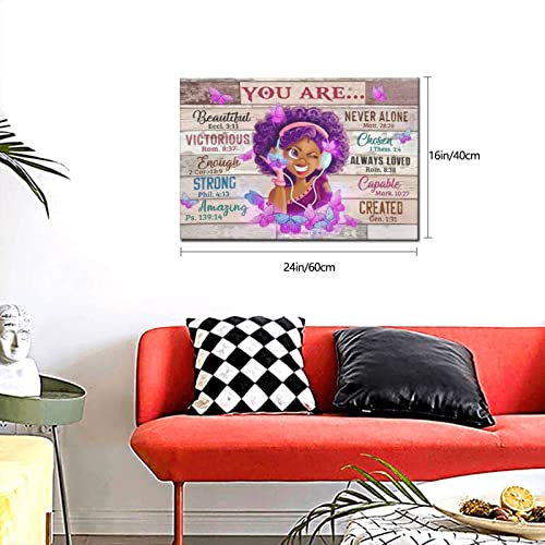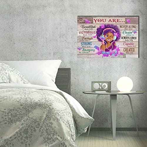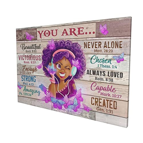 Drawpro - لوحة فنية جدارية من الكانفس بتصميم فتاة افريقية امريكية محفزة لديكور غرفة النوم والمعيشة والحمامات من درو برو، تصلح كهدية للبنات مقاس 16×24 بوصة، متعدد الألوان