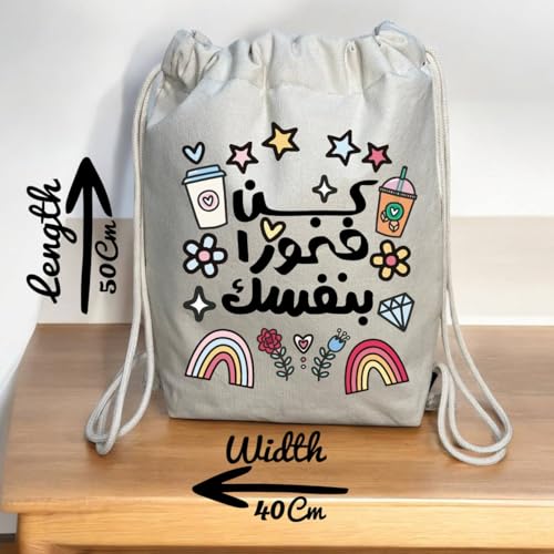 Generic - شنطة برباط سحب - شنطة صالة الالعاب الرياضية - طباعة على جانب واحد - تصميم تحفيزي - كن فخورا بنفسك- نحن نطبع هديتك