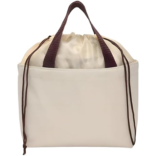 Generic - شنطة غداء برباط سحب - شنطة انيقة معزولة بلون بينك وبيج مع مقابض متينة، مثالية لحمل الوجبات مع الحفاظ عليها باردة او دافئة. (بيج)