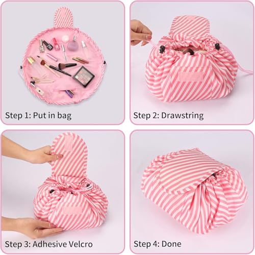 - تصميم سريع الوصول: يتميز برباط إغلاق يفتح على سطح مستوٍ، مما يسمح لك برؤية جميع مستحضرات التجميل الخاصة بك والوصول إليها في وقت واحد