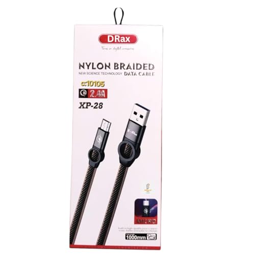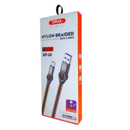 DRaX - كابل معدني منسوج نوع سي من دراكس، شحن سريع 120 وات، أسود