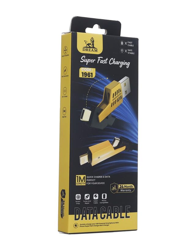 Dream - كابل USB بمنفذ لايتنينج من دريم، لون أسود وأصفر