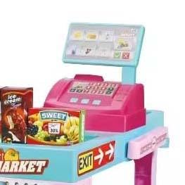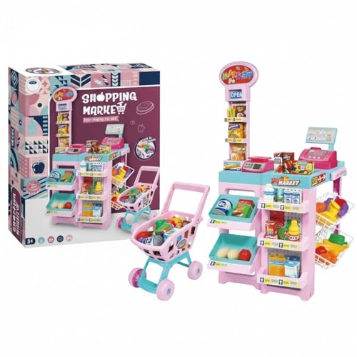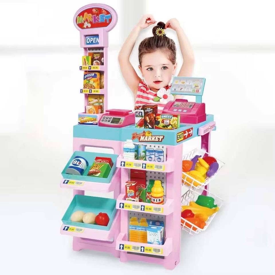 - مجموعة كاملة وشاملة: تحتوي على منصة عرض السوبر ماركت، ميزان رقمي، وماكينة كاشير، بالإضافة إلى عربة تسوق منفصلة.