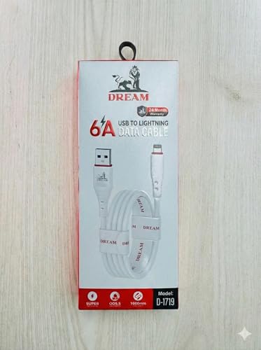 Dream - Dream كابل شحن سريع USB إلى Lightning، 6A، طول 1000 ملم، أبيض، موديل D-1719