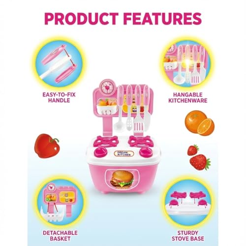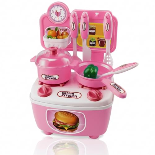 Generic - مجموعة مطبخ الأحلام للأطفال، لعبة مطبخ وردية مع موقد وطنجرة ومقلاة وأدوات طبخ، 17+ قطعة تتضمن فواكه وخضروات، لعبة تعليمية للبنات، للأعمار 3+ (وردي)