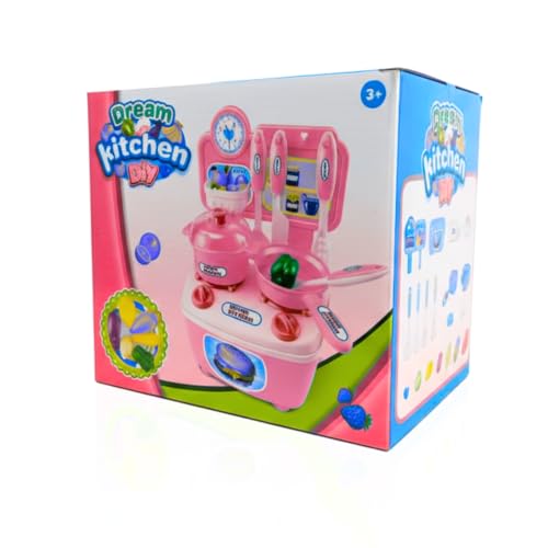 - تصميم وردي جذاب: مطبخ صغير بتصميم Dream Kitchen DIY باللون الوردي مع رسومات ملونة وتفاصيل واقعية تحفز خيال الأطفال وتشجعهم على اللعب الإبداعي