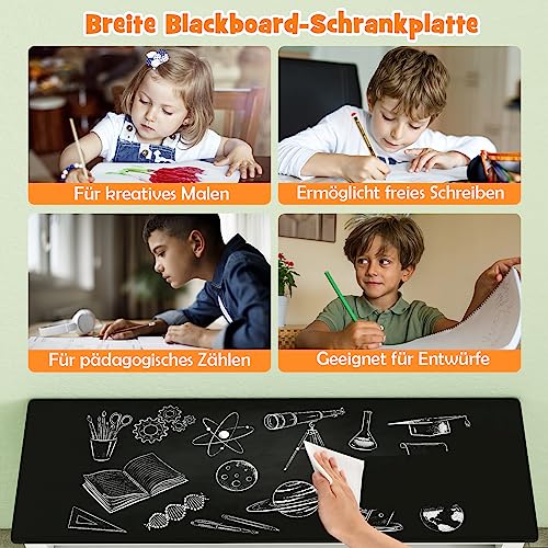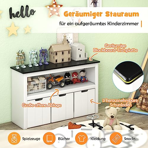 - سطح طاولة قابل للكتابة - يمكن الكتابة على سطح الطاولة السوداء لرف الأطفال هذا، حتى يتمكن الأطفال من الرسم أو الكتابة عليه بشكل إبداعي. إذا قمت بإخراج جميع الأدراج الثلاثة، يمكنك استخدامها وكذلك طاولة الأطفال لتناول الطعام أو القراءة أو الرسم.