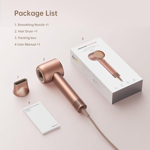 DREAME - مجفف شعر هير جلوري لتجفيف سريع مع محرك عالي السرعة 110,000 دورة/الدقيقة سرعة تدفق هواء 70 م/ث بتقنية الأيونات السالبة القوية خفيف الوزن وتحكم في درجة الحرارة وسرعة الهواء AHD6A-RS من دريمي، روز جولد