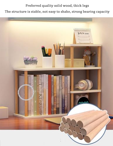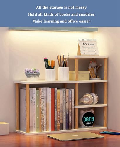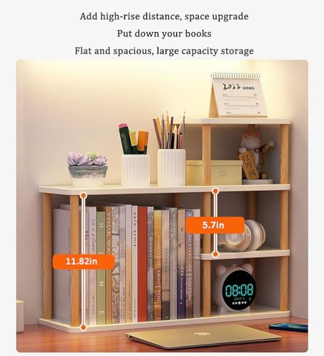 Dreamhousey - رف كتب بسيط لسطح المكتب من دريم هاوس، مقسم تخزين خشبي صلب متعدد الطبقات على مكتب الطلاب بسعة كبيرة، منظم ملفات (ابيض + بلوط)، 014-8